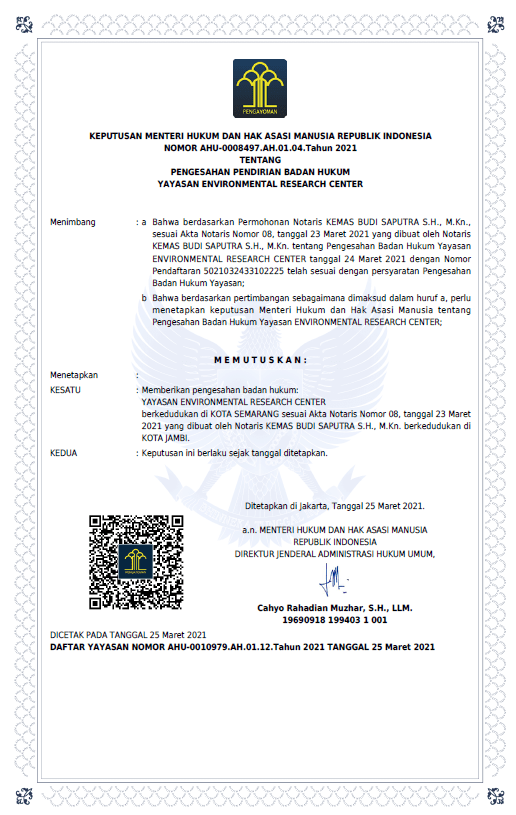 SK Kemenkumham Terkait Pendirian Badan Hukum Yayasan ERC