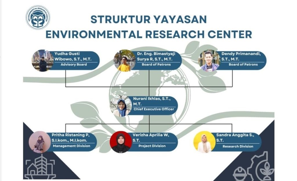ERC dipimpin oleh Nurani Ikhlas S.T., M.T., yang membawahi 3 orang manajer yaitu Pritha Ristraning Pratiwi sebagai manajer divisi, Verizha Aprilia Widyaningrat sebagai manajer proyek, dan Sandra Anggita Sari sebagai manajer penelitian. Terdapat 3 orang advisory board yang juga berprofesi sebagai dosen dan praktisi yaitu Yudha Gusti Wibowo (Dosen Pertambangan ITERA), Bimastyaji Surya Ramadan (Dosen Teknik Lingkungan FT UNDIP), dan Dendy Primanandi (Praktisi dari PT. Wastesmartech dan Staf Muda Walikota Banjarmasin Bidang Lingkungan Hidup).